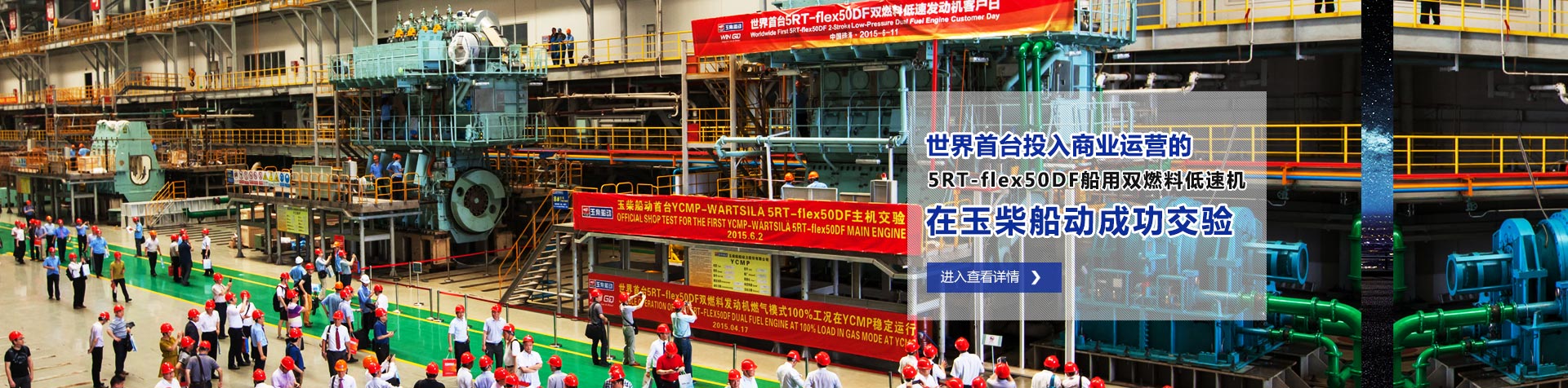近日,世界首臺投入商業運營的5RT-flex50DF船用雙燃料低速發動機在玉柴船動成功交驗。